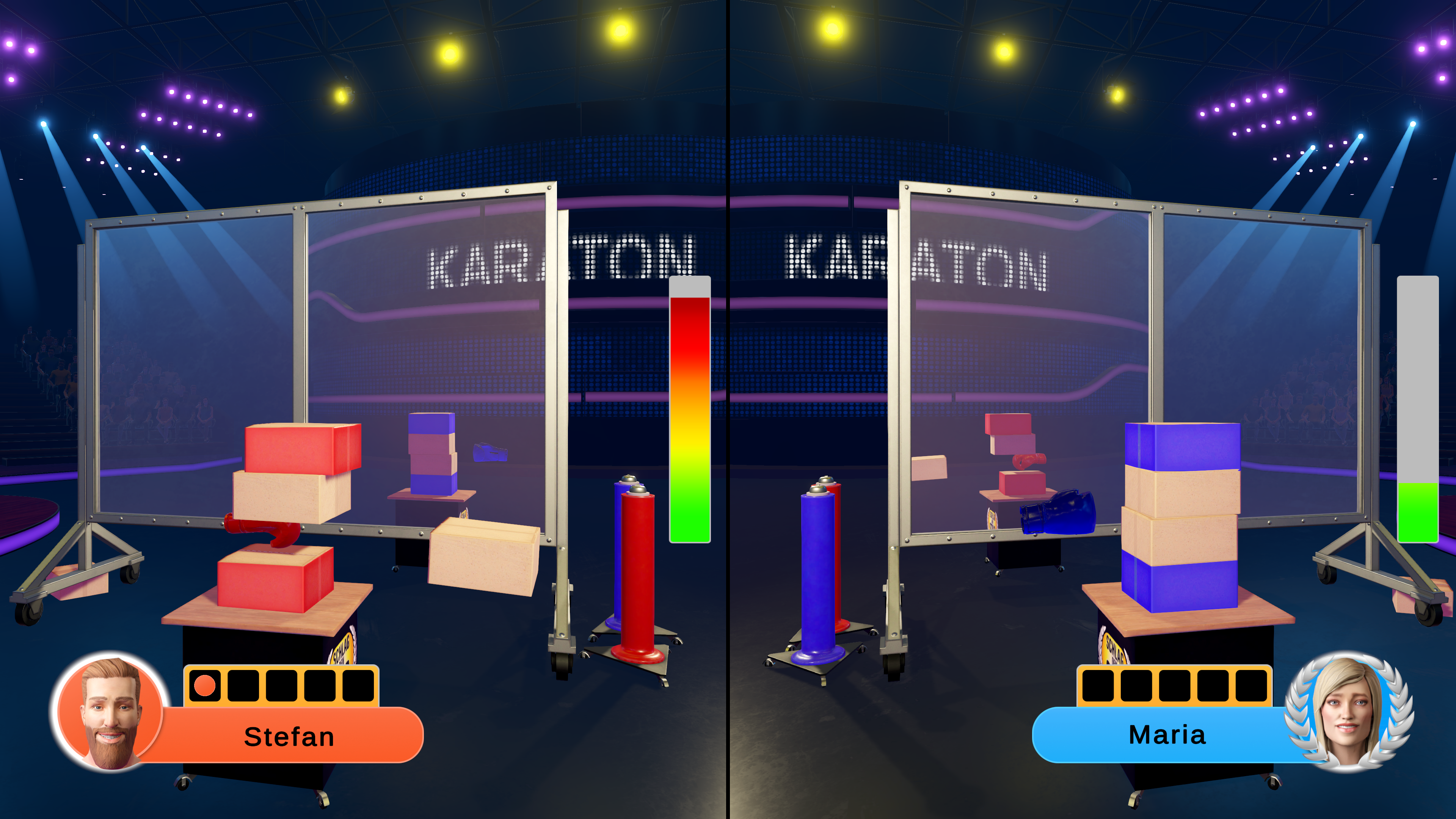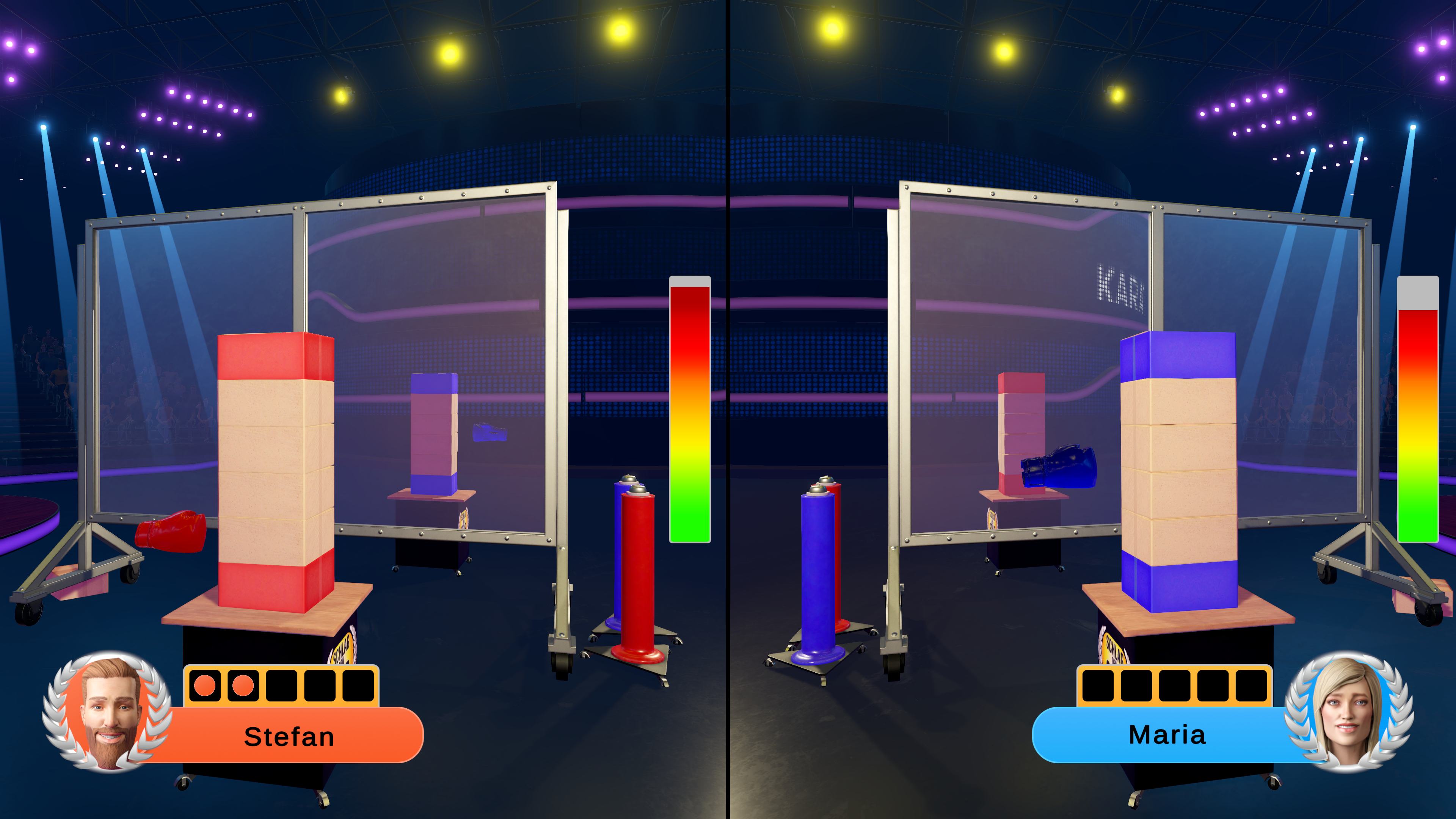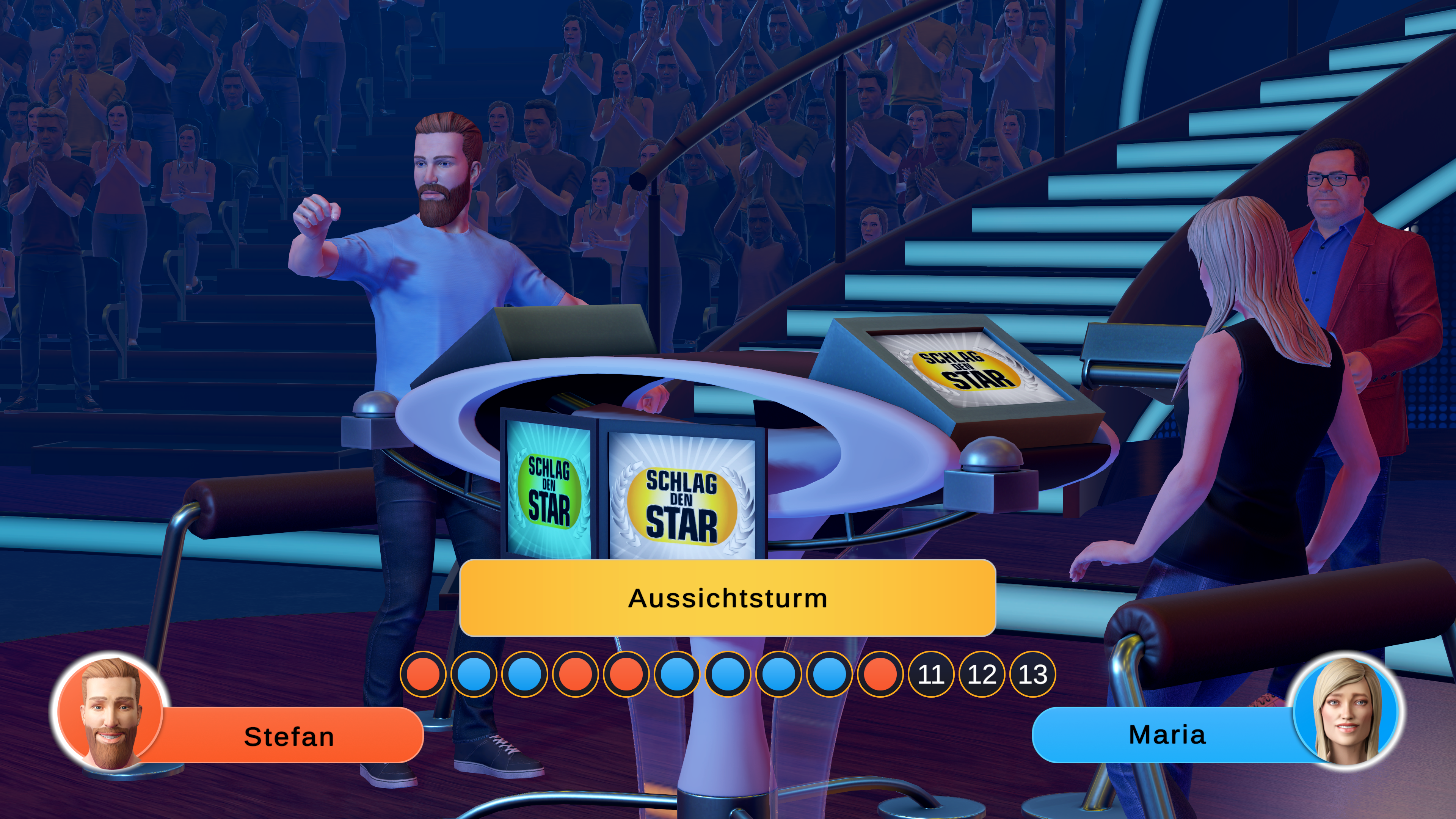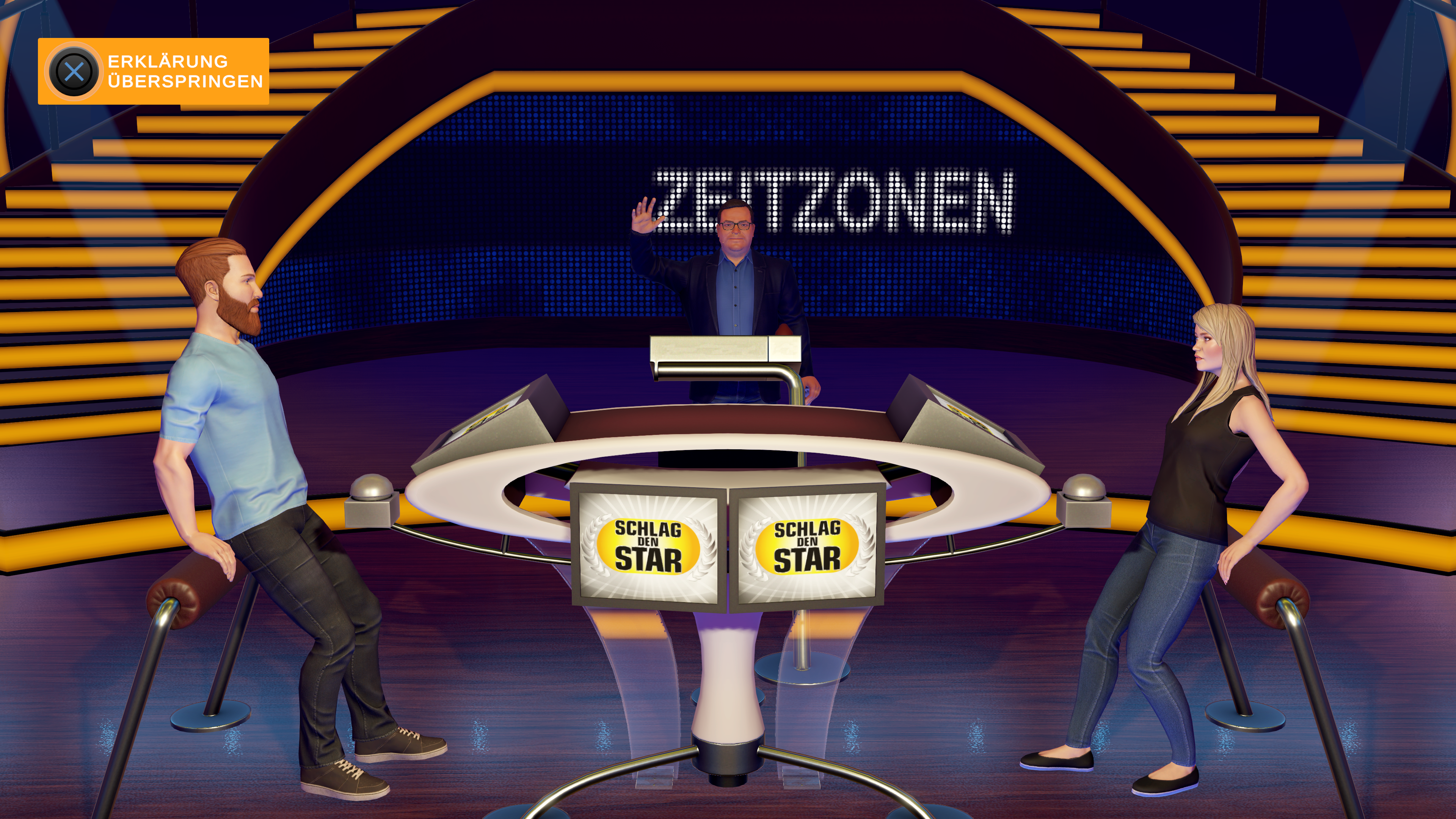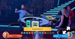 In SCHLAG DEN STAR – DAS 2. SPIEL sind die Spieler selbst die Stars: Gespielt wird entweder 1 gegen 1 oder 2 gegen 2. Es finden sich nicht genug Mit- und Gegenspieler? Kein Problem: Diese lassen sich durch fiktive Charaktere ersetzen. Damit es nicht langweilig oder vorhersehbar wird, verfügen diese Charaktere immer über unterschiedliche Stärken und Schwächen.