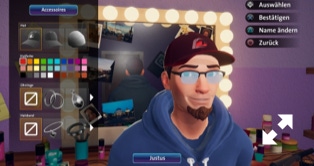 Der Charaktereditor bietet den Spielern die Möglichkeit, ihre ganz eigenen Avatare zu erstellen und mit diesen das Studio zu betreten. Eine Vielzahl von Individualisierungsmöglichkeiten stellt sicher, dass das eigene Alter Ego so aussieht, wie man es sich wünscht. Hierbei helfen diverse Accessoires wie Frisuren, Shirts und Muster, Kopfbedeckungen, Brillen, Ketten, etc. Auch einen individuellen Namen kann jeder Spieler seinem eigenen Charakter verpassen.